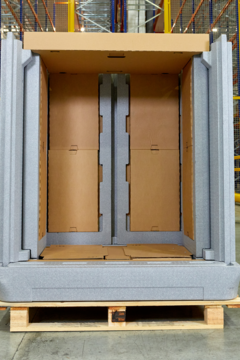 La pallet-shipper est la solution par excellence pour le transport de grands volumes de produits thermosensibles (vaccins, médicaments…). Elle garantit le maintien de la température pendant toutes les phases de la supply chain, même dans des conditions météorologiques extrêmes. Composée de matériaux isolants à haute densité, avec un système d'emboîtement breveté, la pallet-shipper est préconisée pour le fret aérien. De plus CAPPI a conçu une solution éco-responsable visant à réduire l’impact environnemental des expéditions. La pallet-shipper est fabriquée en France et elle est 100% recyclable.